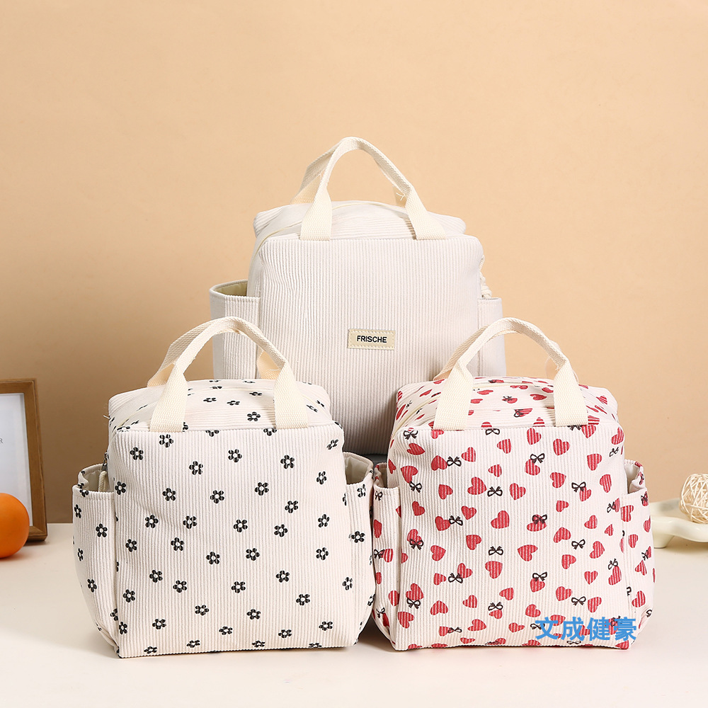 新しいコーデュロイポータブルランチバッグポータブル大容量スクエアバッグ学生断熱ランチボックスバッグ
