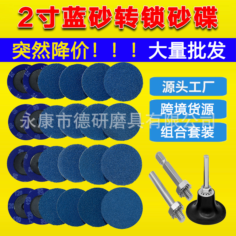 クロスボーダーセット2インチ50mmブルーサンド回転ロック砂皿スパイラル研磨砂布研磨片ポリトレイ