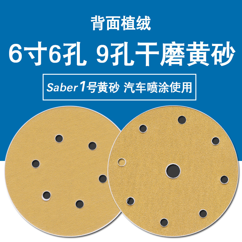 卸売黄色サンドペーパー 6 インチ 6 穴 9 穴真空木工プラスチック研磨ラウンド自己粘着乾式研削バックベルベット黄色サンドペーパー
