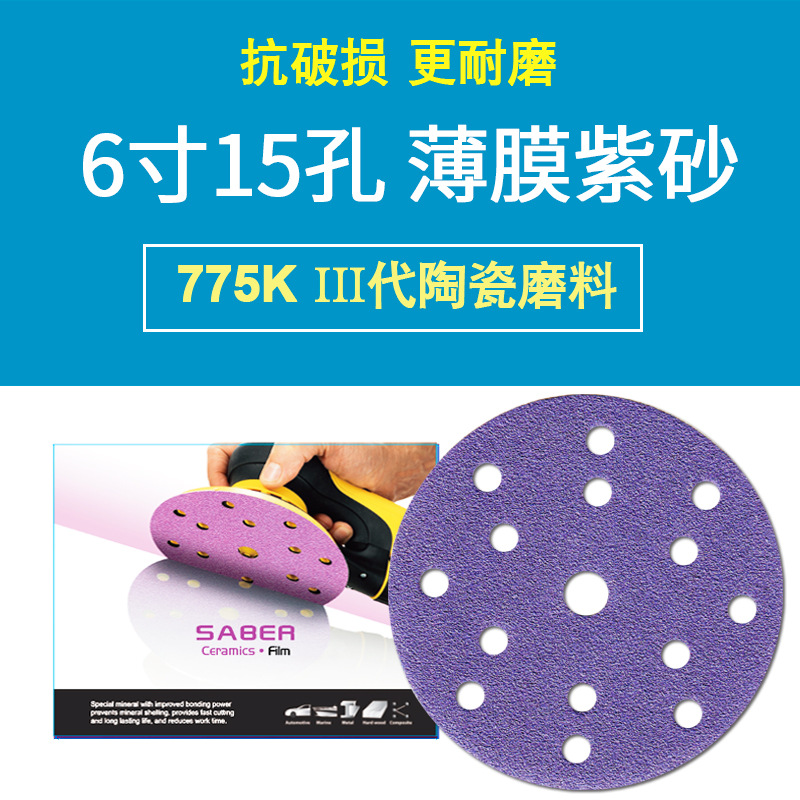 Saber775kフィルム紫紙6インチ6穴ドライ研削サンドペーパー紫セラミック研磨材サンドペーパー研磨金属自動車