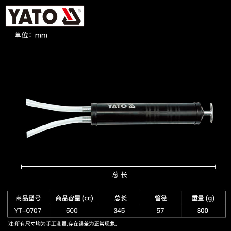 YATO 手動二重管オイルポンプ アルミ合金手動オイルポンプ 500ccYT-0707