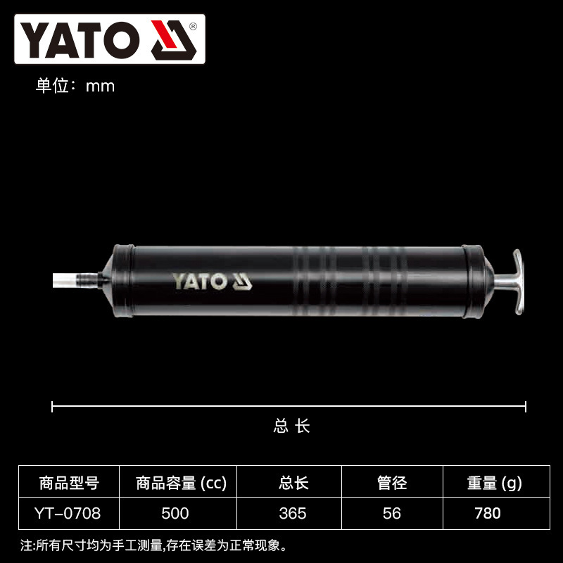 YATO 手動単管オイルポンプ アルミ合金手動オイルポンプ 500ccYT-0708