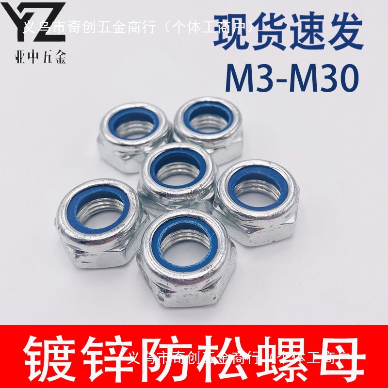 ナイロン緩み止めナットロック滑り止め止めセルフロックナット亜鉛メッキナットm3m4 m6m8m10m12m14