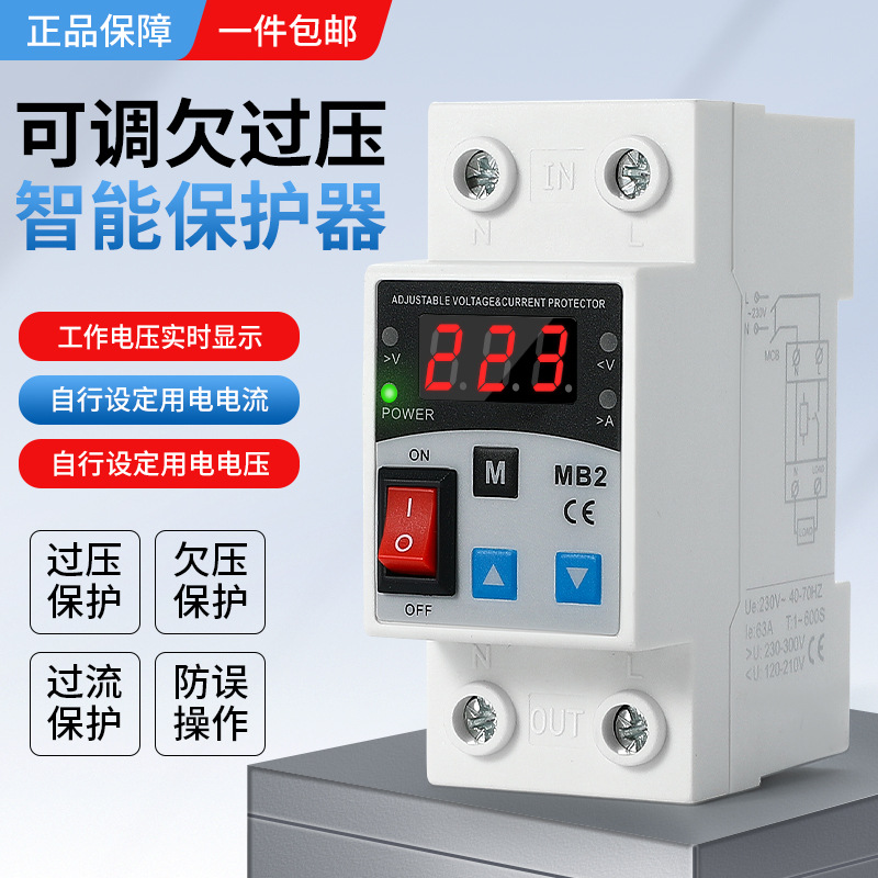 デジタル表示自複式過電圧保護器63a家庭用過電圧不足保護器遅延自動リセット220v