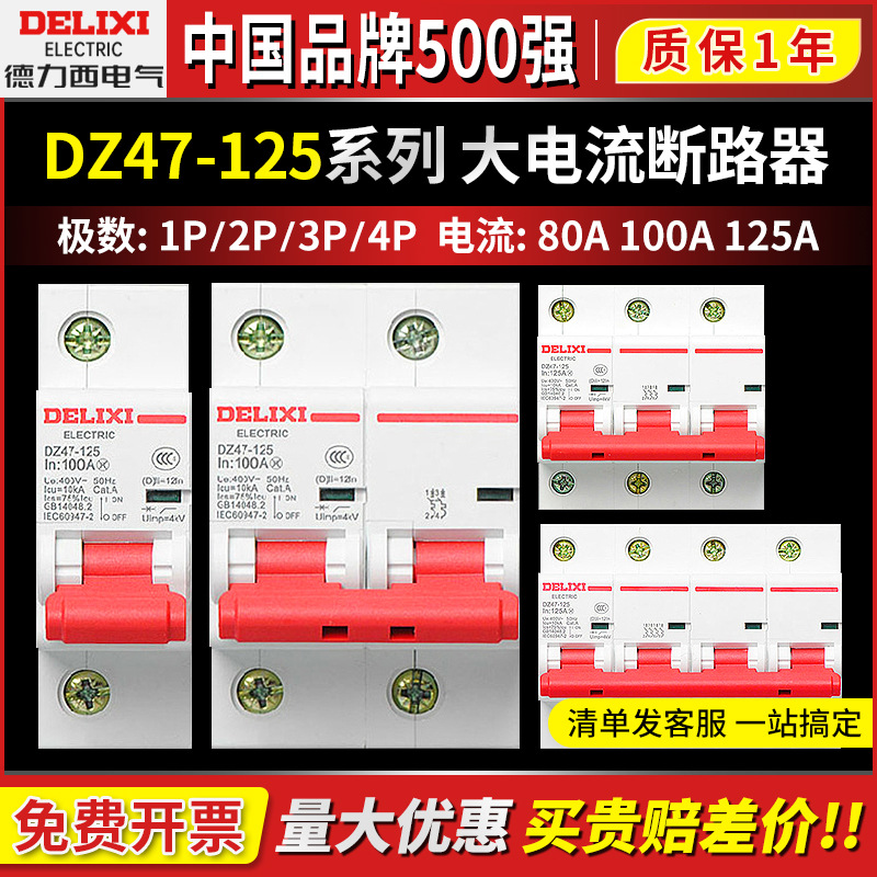 Delixi DZ47-125 エアスイッチ 1P2P3P4P 高電流サーキットブレーカー 80A100A125A 家庭用