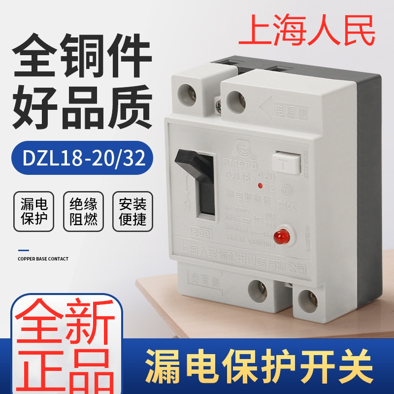 上海DZL18-20A DZ18L-32A家庭用漏電保護スイッチ漏れ保護スイッチ遮断器
