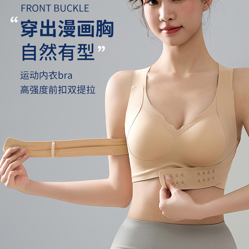 クロスボーダー temu ヨーロッパとアメリカの大きいサイズの下着胸パッドなしヨガブラフロントバックル通気性耐衝撃プッシュアップスポーツブラ