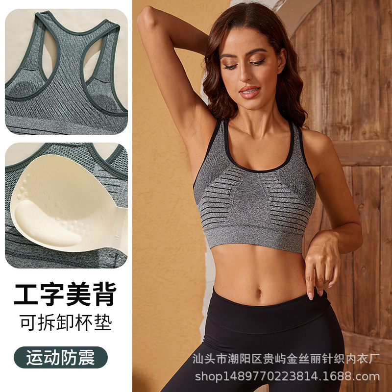 新型スポーツ下着女性スチールレス高強度ランニングフィットネス防震工字美背ヨガブラジャーベスト