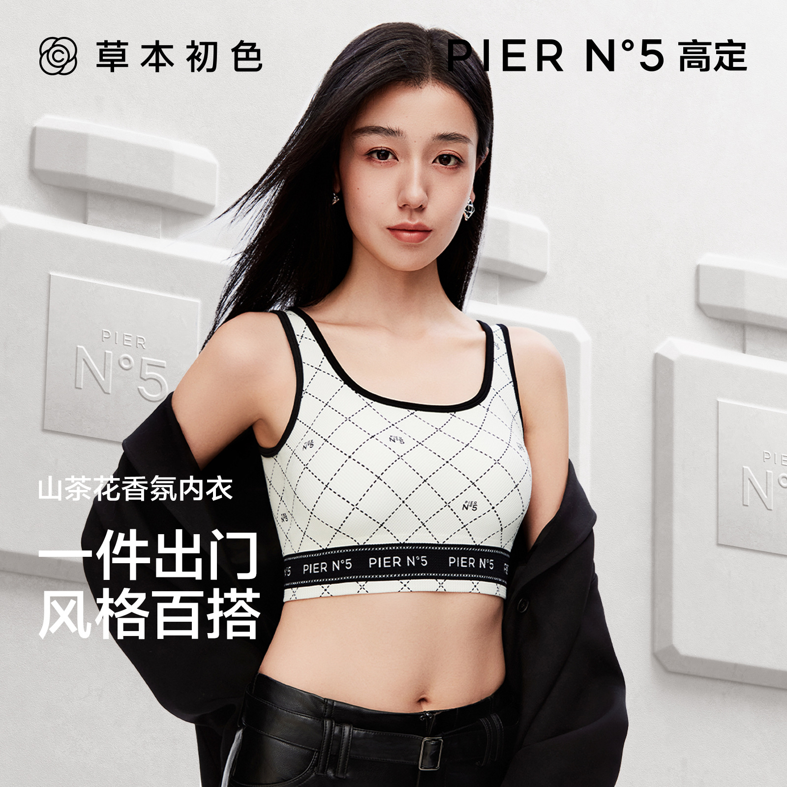ハーバルファーストカラーファッショナブルで多用途なブラジャー、一体型固定カップ付き、屋外で着用可能、高強度耐衝撃スポーツブラ