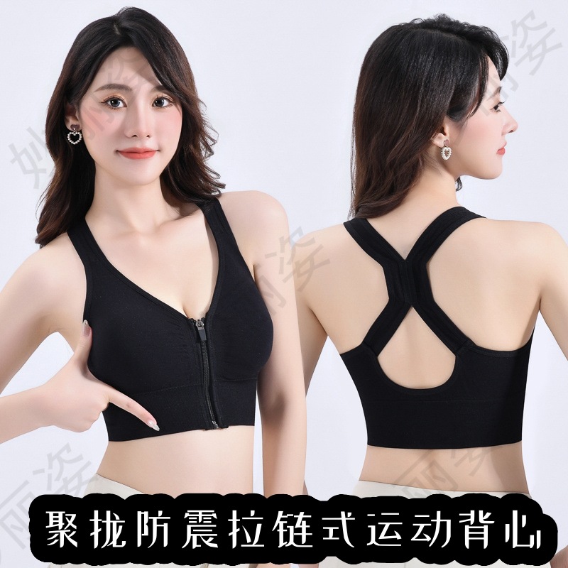 高級ヨガシームレス高強度胸防震前ファスナー安全防止交差美背運動ブラジャー下着