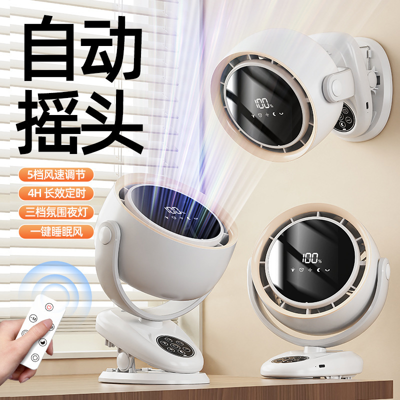新製品デスクトップ壁掛け式デジタル表示循環ファンリモコン無葉循環ファンクロスボーダー起爆工場直接ロット