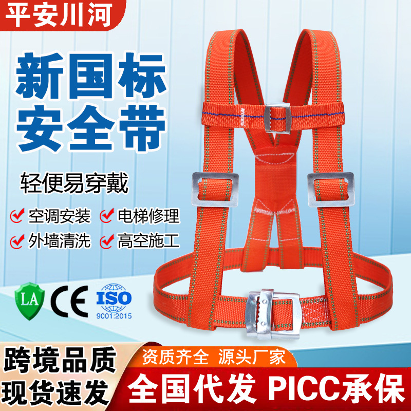 新国標安全ベルト国標落下防止半身式緩衝単小フック安全ベルト三点式安全ベルト