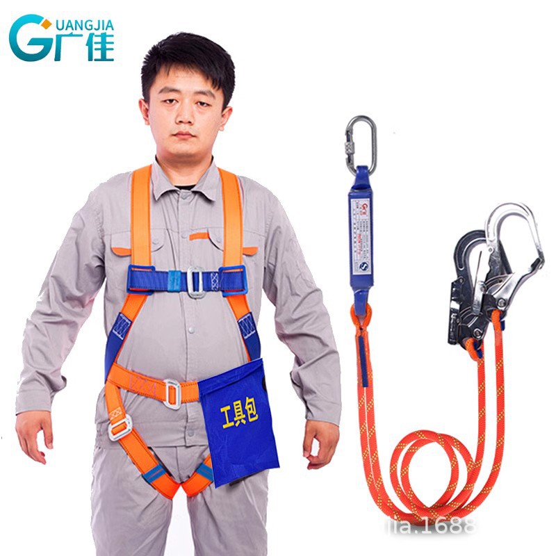 国標全身5点式安全ベルト高所作業保険付きダブルフック電気安全ロープセット落下防止