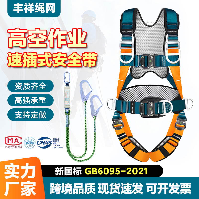 新しい国家標準屋外ハーフハイト作業安全ベルト安全ロープクイックプラグイン三点建設現場安全ベルト安全ベルト