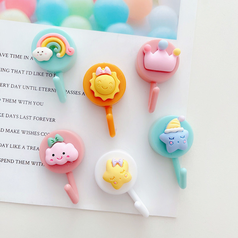 かわいい漫画フック強力ビスコースドアバックキースティックフックキッチン痕跡なし貼り付けバスルーム穴なし壁フック