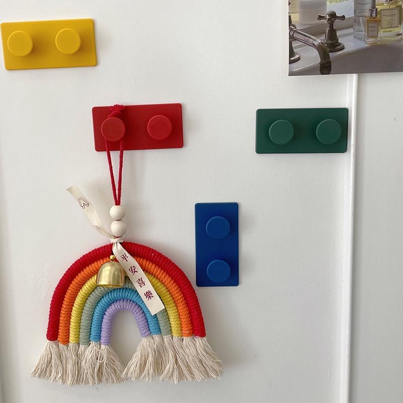Ins風モランディ色は服の積み木フックを掛けて穴を開けないでドアの後ろの壁面の鍵のプラグをつけてフックをつけます。