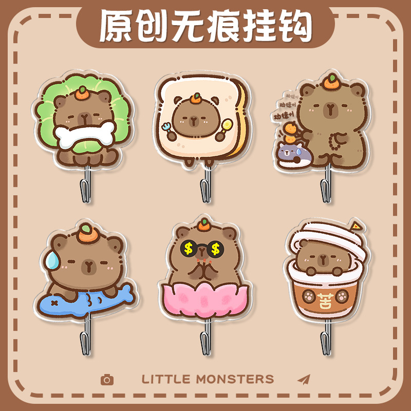 Kapibala ドアバックキーフック 強粘着 穴あけ不要 かわいい バスタオル トイレ 粘着フック 吊り下げフック
