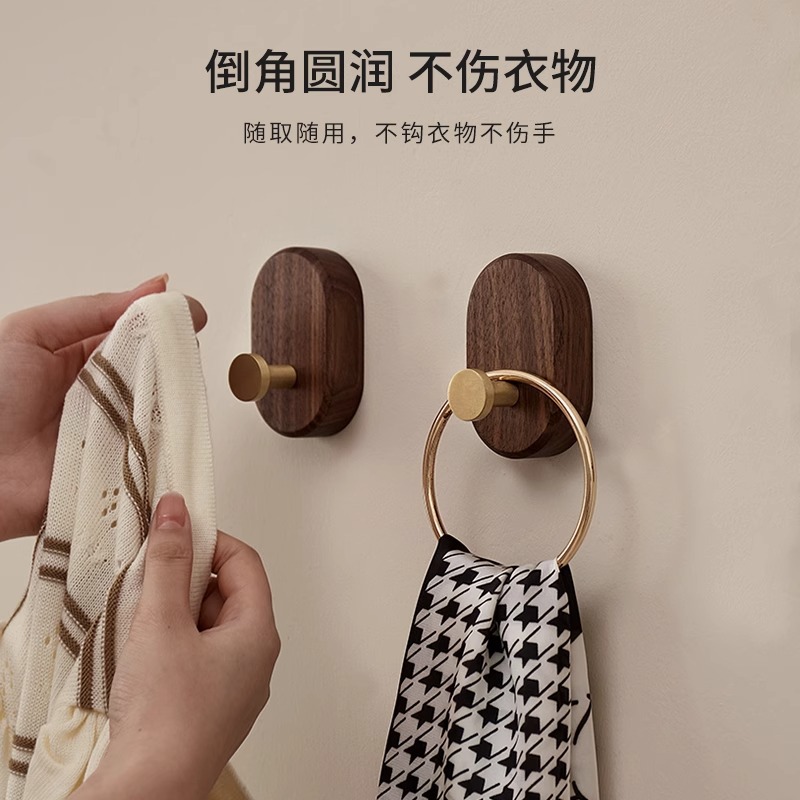 ウォールナットドアバックフック、高級無垢材コートフック、玄関ドア、玄関壁、強力パンチフリー、シンプルウォールナット