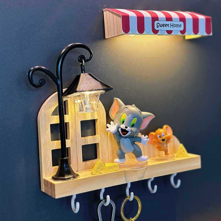 玄関キーホルダー収納イン無垢材パンチ壁フックドアクリエイティブかわいい壁掛け装飾