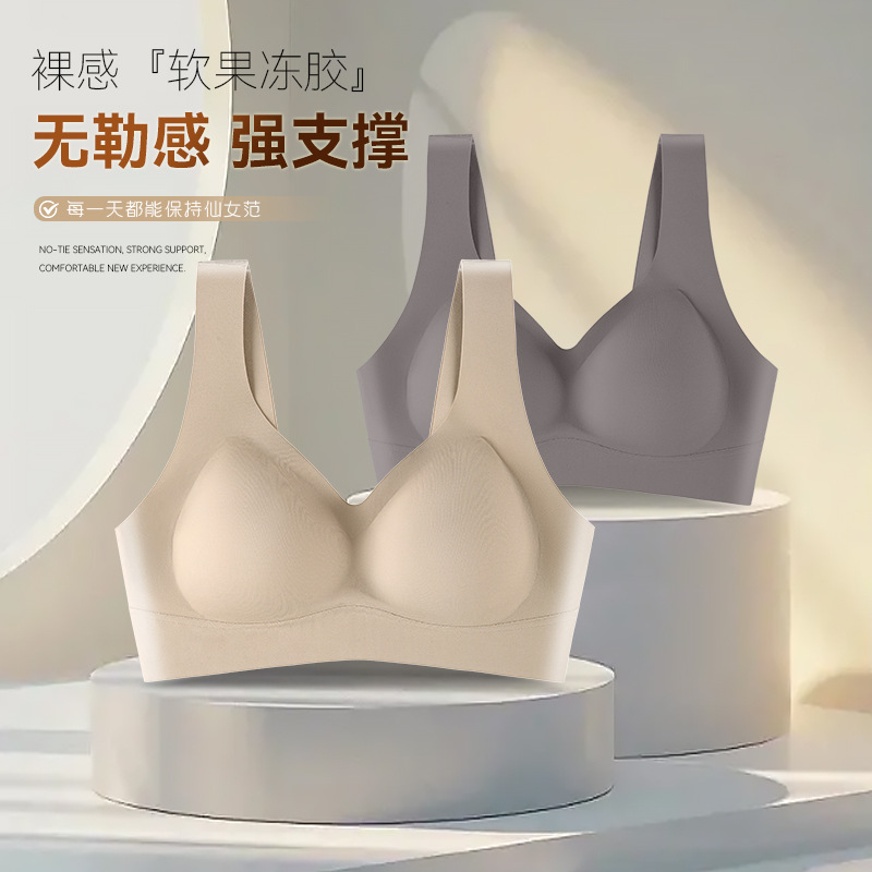 ゼリーの柔らかいサポートの下着の女性の小胸は無鋼の輪の運動の美背の無痕の快適な文のブラジャーの夏の薄い金を集めます。