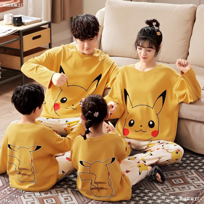 春と秋の親子パジャマ純綿長袖子供パジャマ一家三、四口男女子供親子服