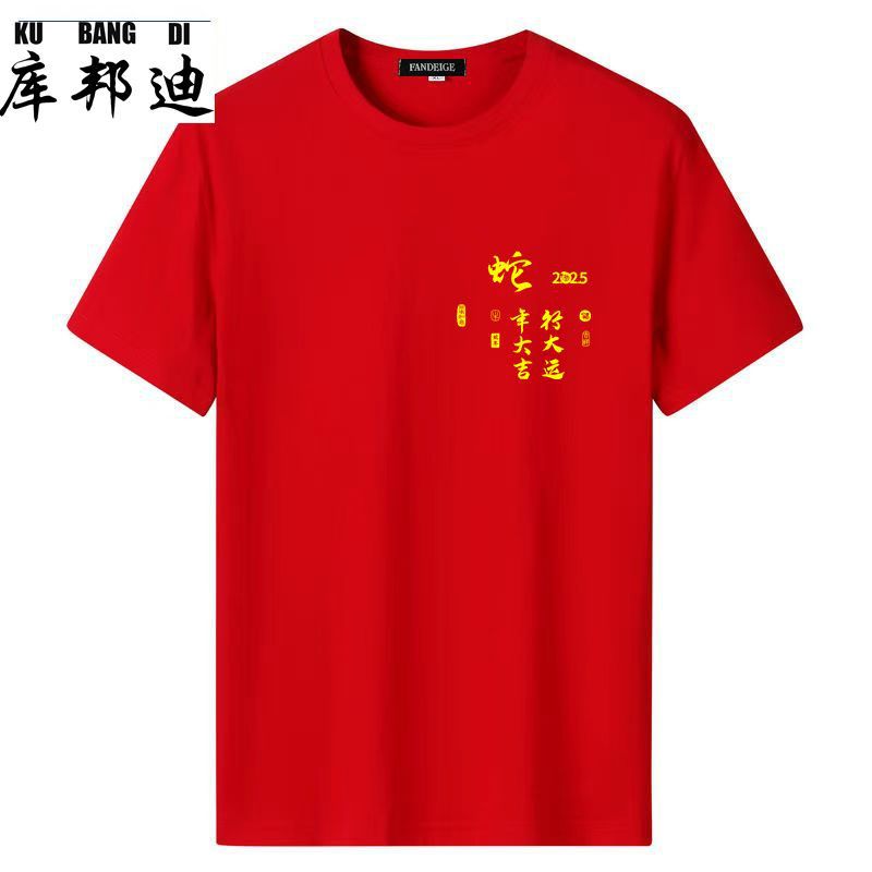 2025 夏メンズルーズ大きいサイズ赤半袖下着干支年蛇年 Tシャツラウンドネック純綿トップス男性
