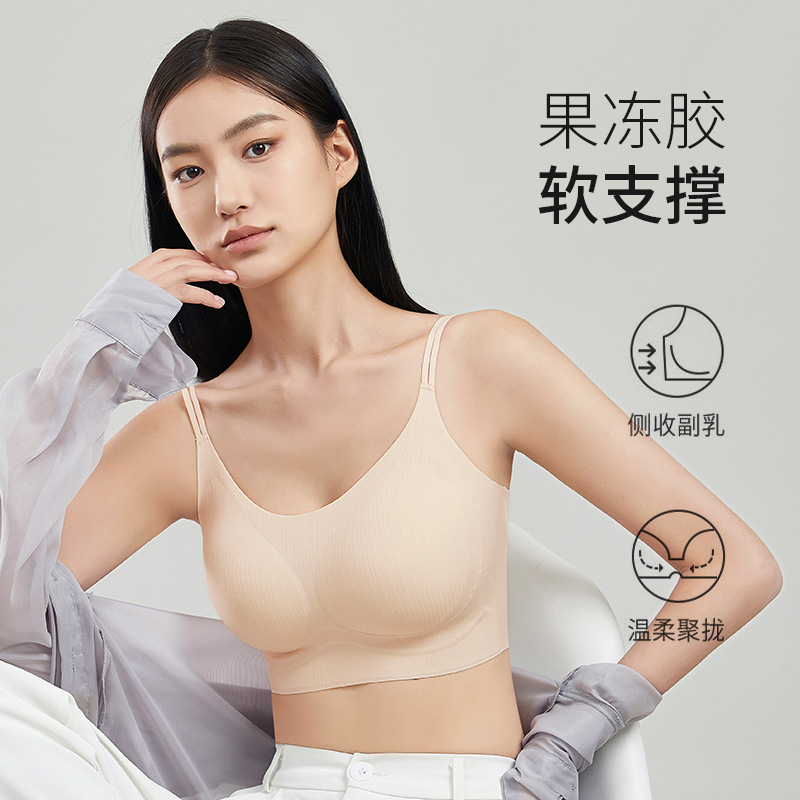 夏の薄いタイプの三角カップの前ボタン式の下着の女性のセクシーな細い肩のベルトの美の背中は集まって鋼の輪のブラジャーの小さいブラジャーがありません。