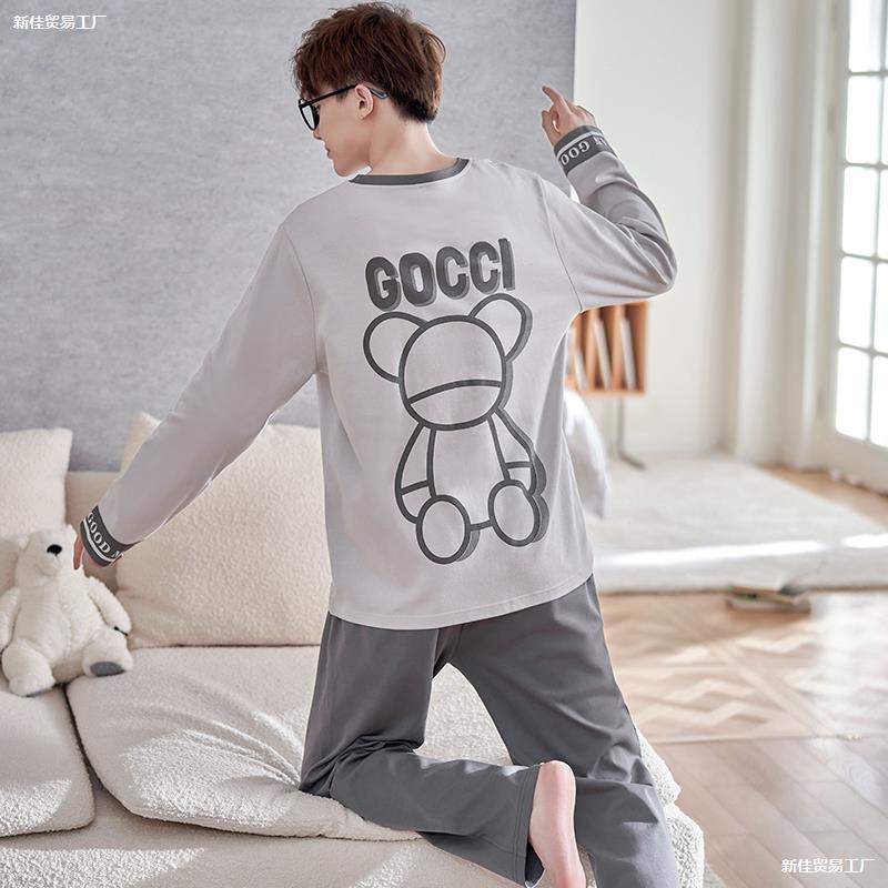 青少年の男の子のパジャマ春と秋の長袖の純綿の子供の中学校の学生の2024新型の男の子の部屋の服
