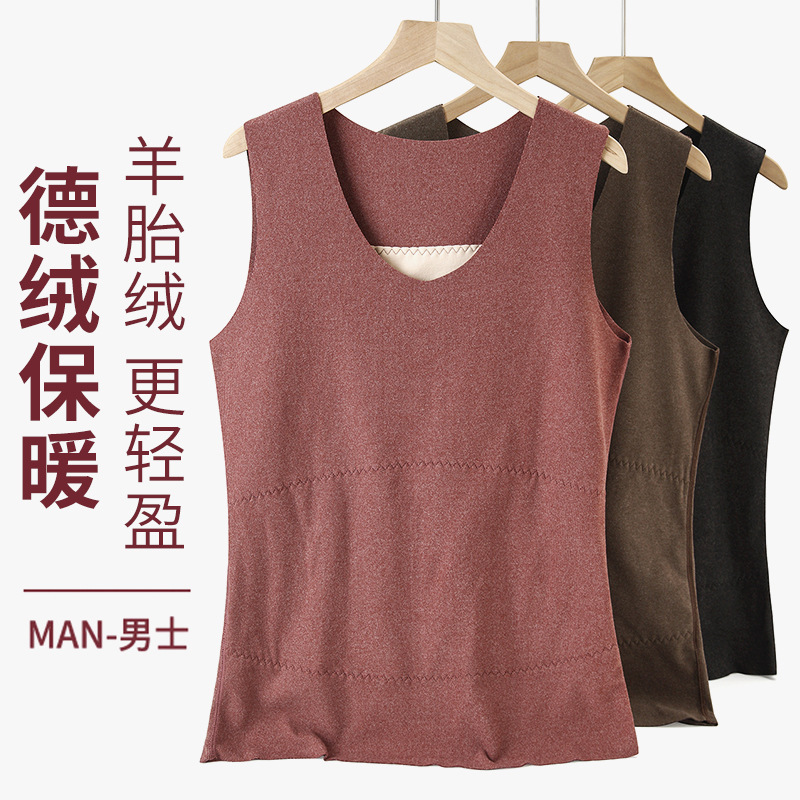 両面磨毛徳絨毛保温ベスト男性無痕肌とベルベットの厚いパッチ保温馬甲の下着