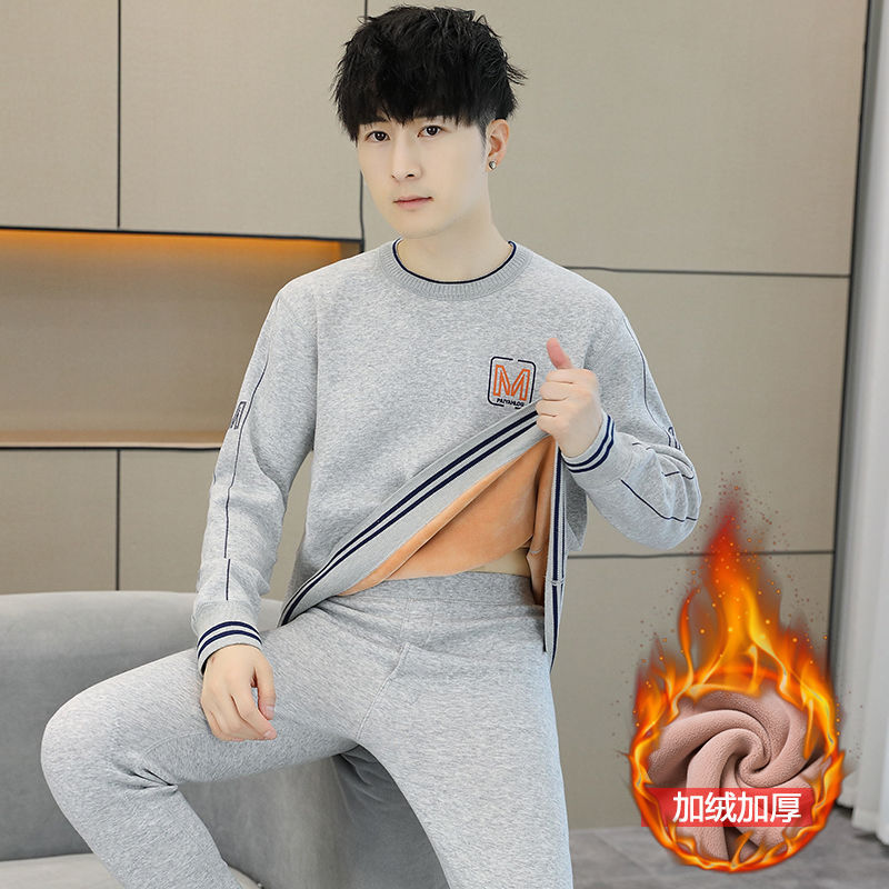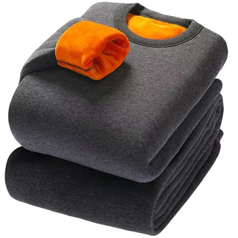 秋冬にベルベットを厚くした男性は、丸首の中高年の父親が仕事をして下着セットを着てスピードを上げて防寒する