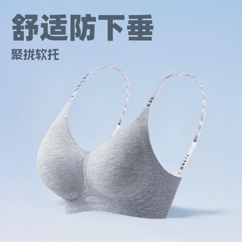 無痕粉底液ステルス下着女性夏の薄いタイプのスチールリングのない大きい胸は小さくて快適で、痩せています。