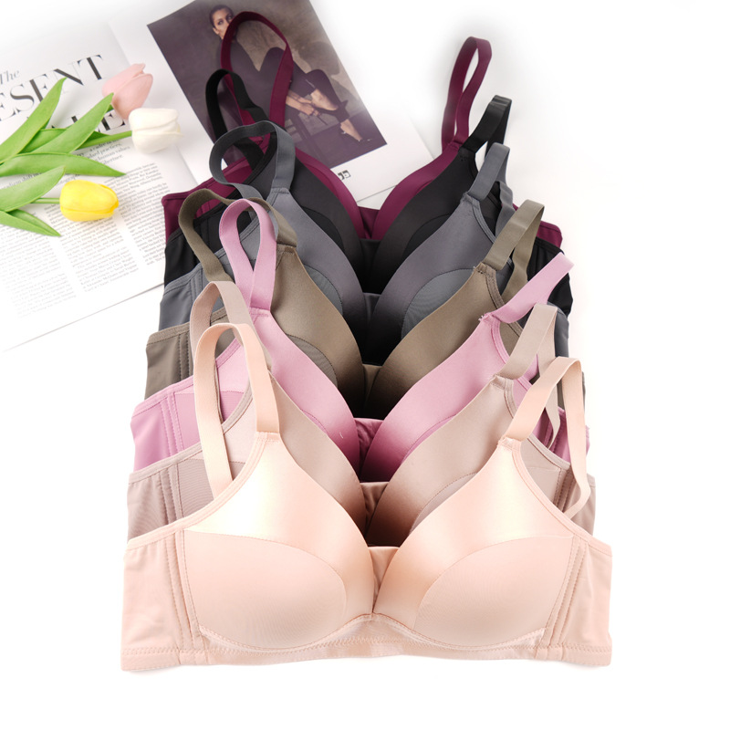 メンテナンスセミ固定カップベストスタイル快適な吸湿性シームレス下着女性のプッシュアップ光沢のあるブラジャー薄型カップ睡眠