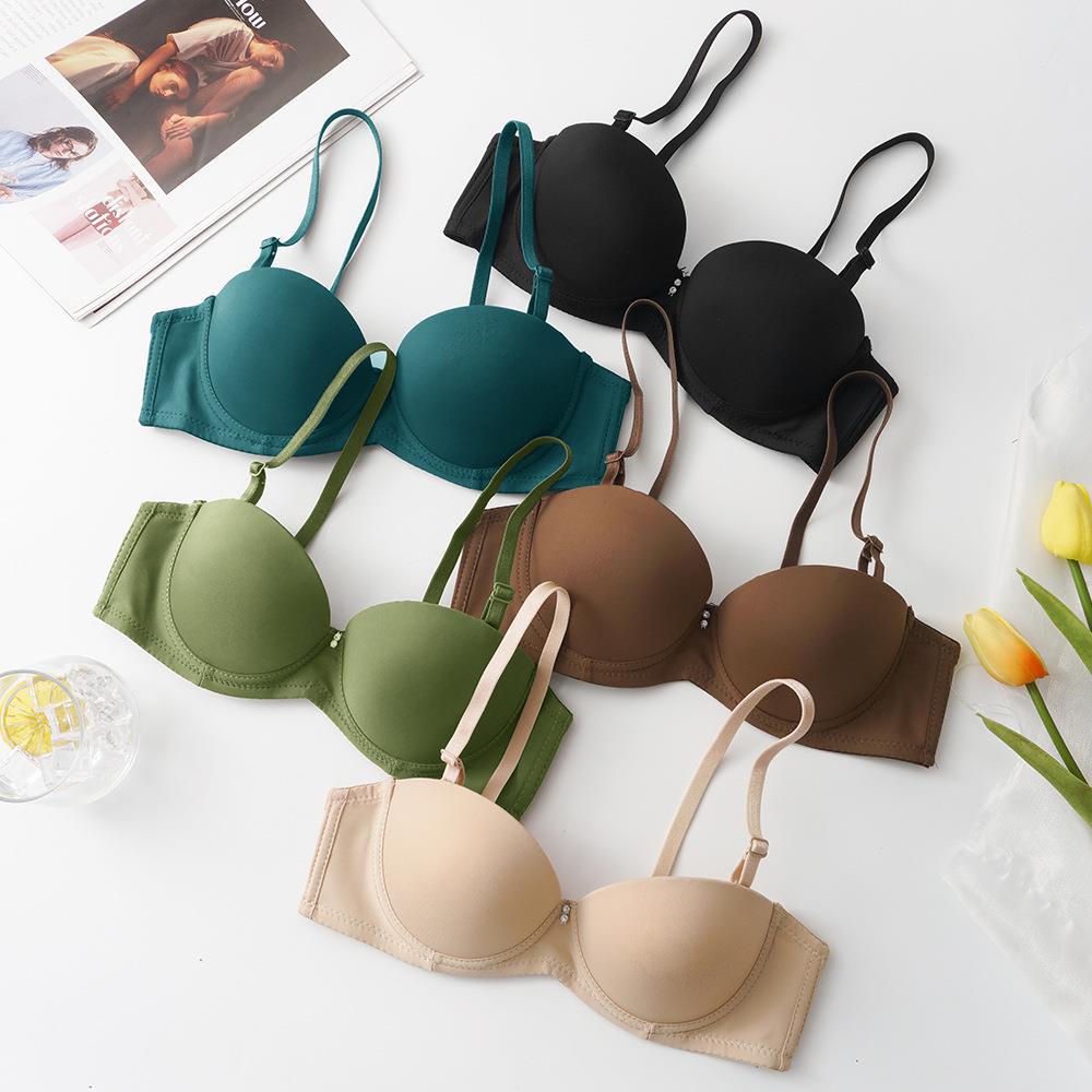 国境を越えた人気のシームレス下着、ダブルブレスト、ノンワイヤー、小さな胸のプッシュアップ、取り外し可能な胸パッド、サスペンダーブラ