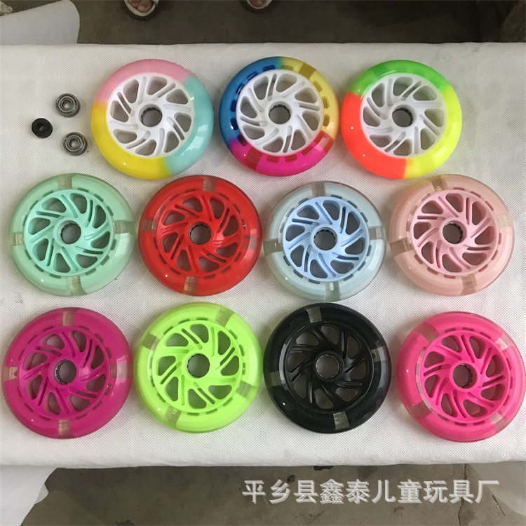 源头工厂滑板车pu闪光轮婴儿车轮子PVC闪光轮蛙式滑板车pu静音轮