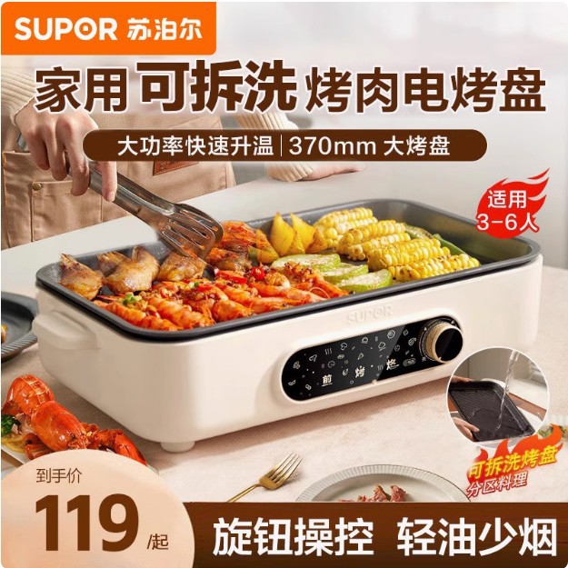 蘇泊爾電気焼き炉焼肉盤電気焼き盤機鉄板焼き無粘分体分解洗浄GJ3723P805