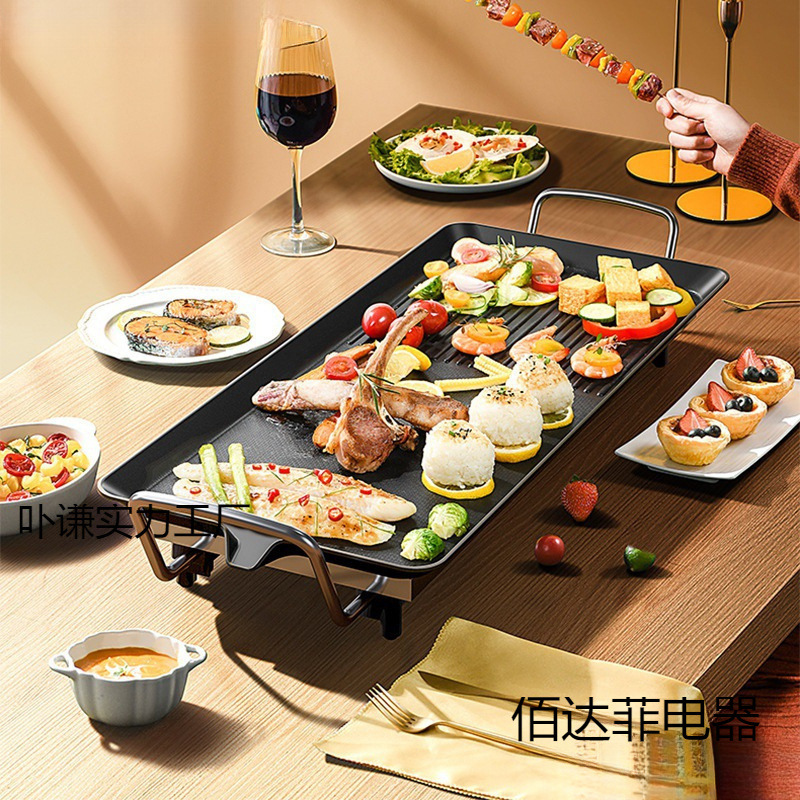多機能商業ポータブル無煙電気バーベキューグリル韓国家庭用長方形ノンスティックラム串キャンプグリルパン