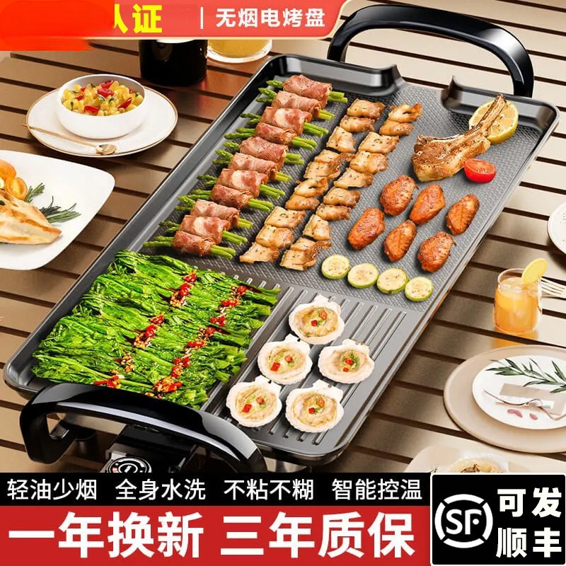 電気グリルパン電気オーブン家庭用屋内バーベキュー無油煙バーベキューマシン新しい多機能焼き魚ノンスティックオールインワンポット