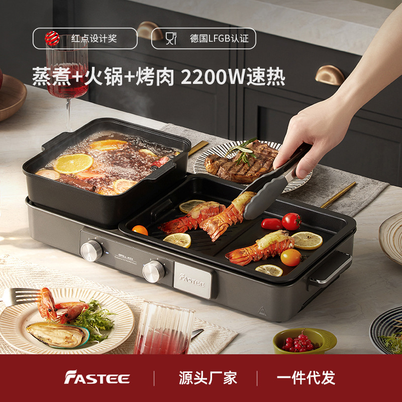 Fastee法詩焼きしゃぶしゃぶ一体型鍋家庭用焼き皿焼肉鍋二合一バーベキュー多機能焼肉鍋
