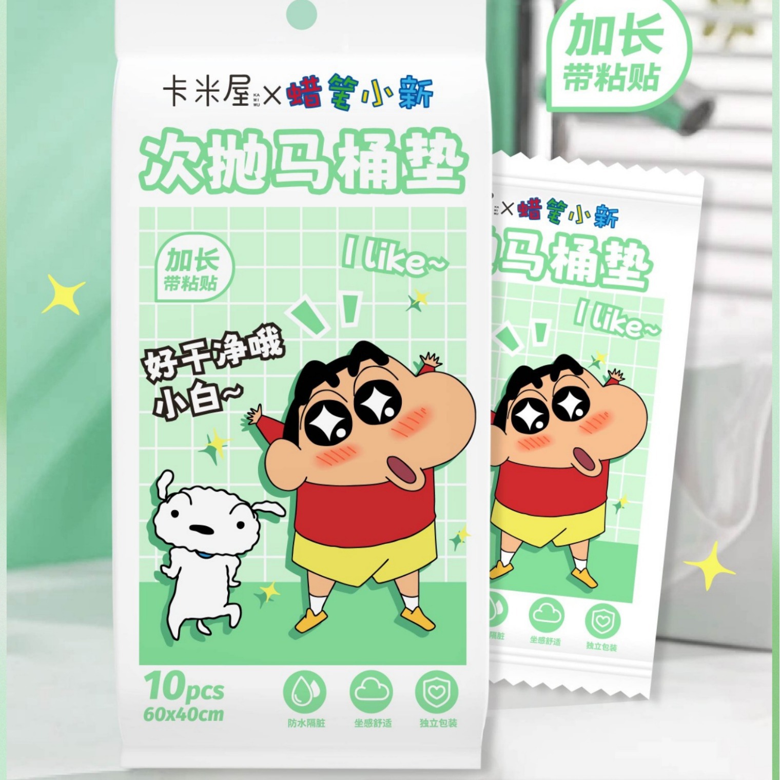 クレヨンしんちゃん使い捨てトイレマット10個入り各個別包装延長テープ防水汚れ