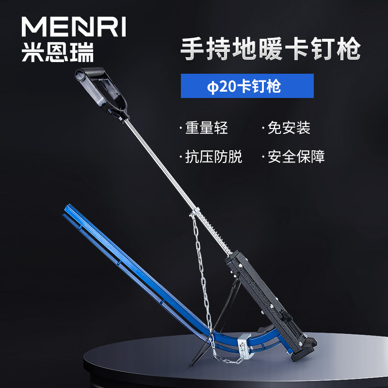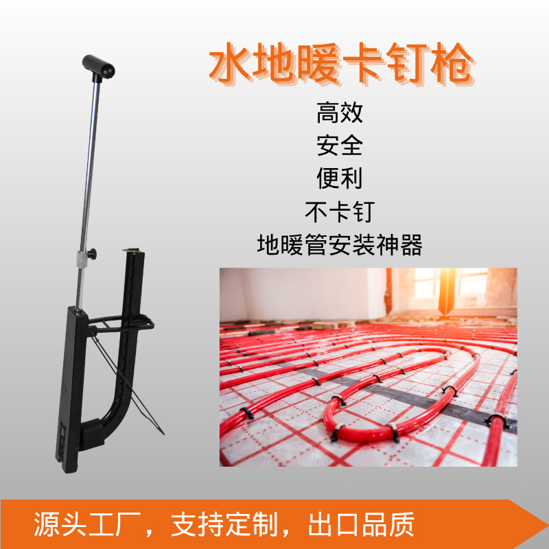 床暖房用釘打ち機、水床暖房設置工事専用、省力化設計、16/20mm床暖房パイプ固定ツール