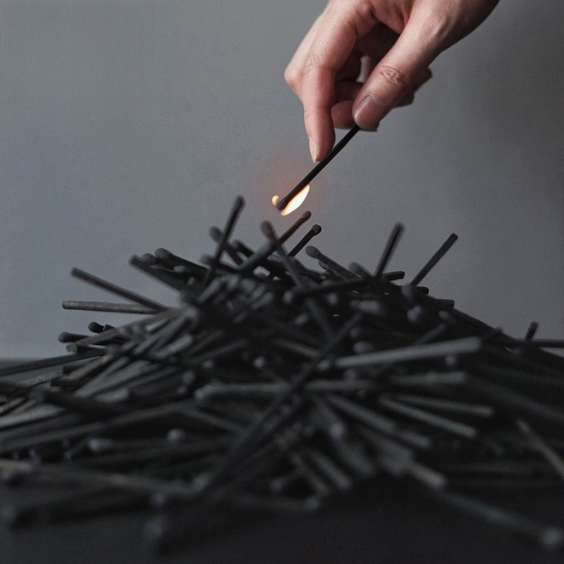 黒いボール紙素材、オールブラックの長いマッチ、アロマセラピーキャンドル、高級印刷ロゴマッチ