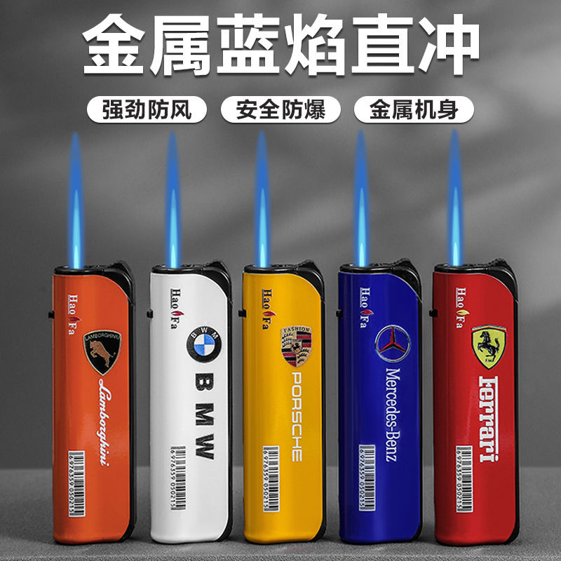 創意斜め打ち金属ライター高颜値豪華車標図案タバコ器空気入れ直沖防風ライター