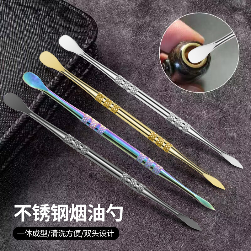 卸売りステンレスパイプスプーン除棒パイプスプーン彩チタン二頭煙ペーストスプーン煙掘りタバコ油洗浄ツール