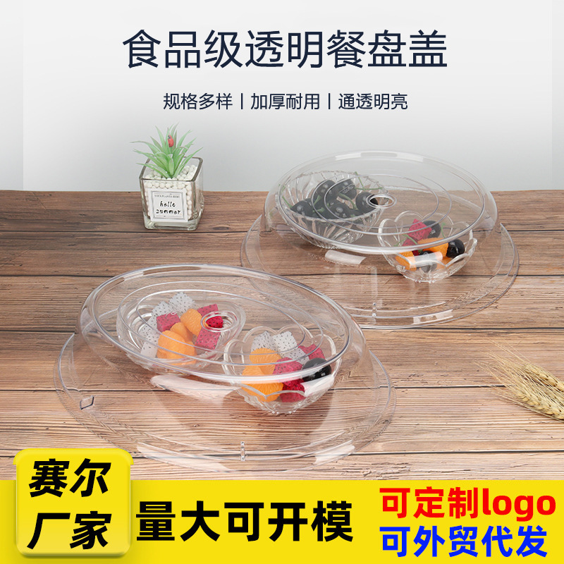 Pc透明蓋付き防塵試食盤商用果物盤食品展示盤は数盆メーカーに直接供給することができる