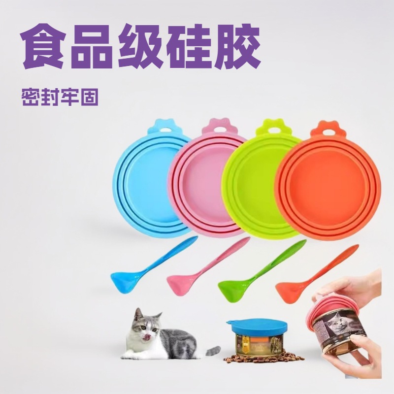 热销硅胶罐头盖硅胶宠物罐头盖三合一保鲜盖宠物用品