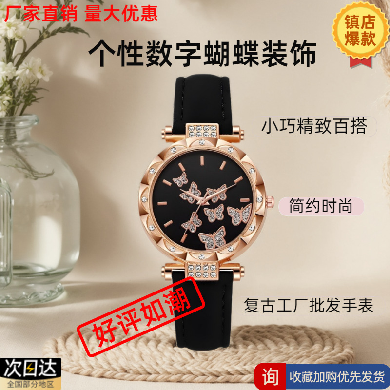 国境を越えた新しい爆発モデルファッション人格シンプルなデジタル蝶装飾ベルトレトロレディース腕時計工場卸売