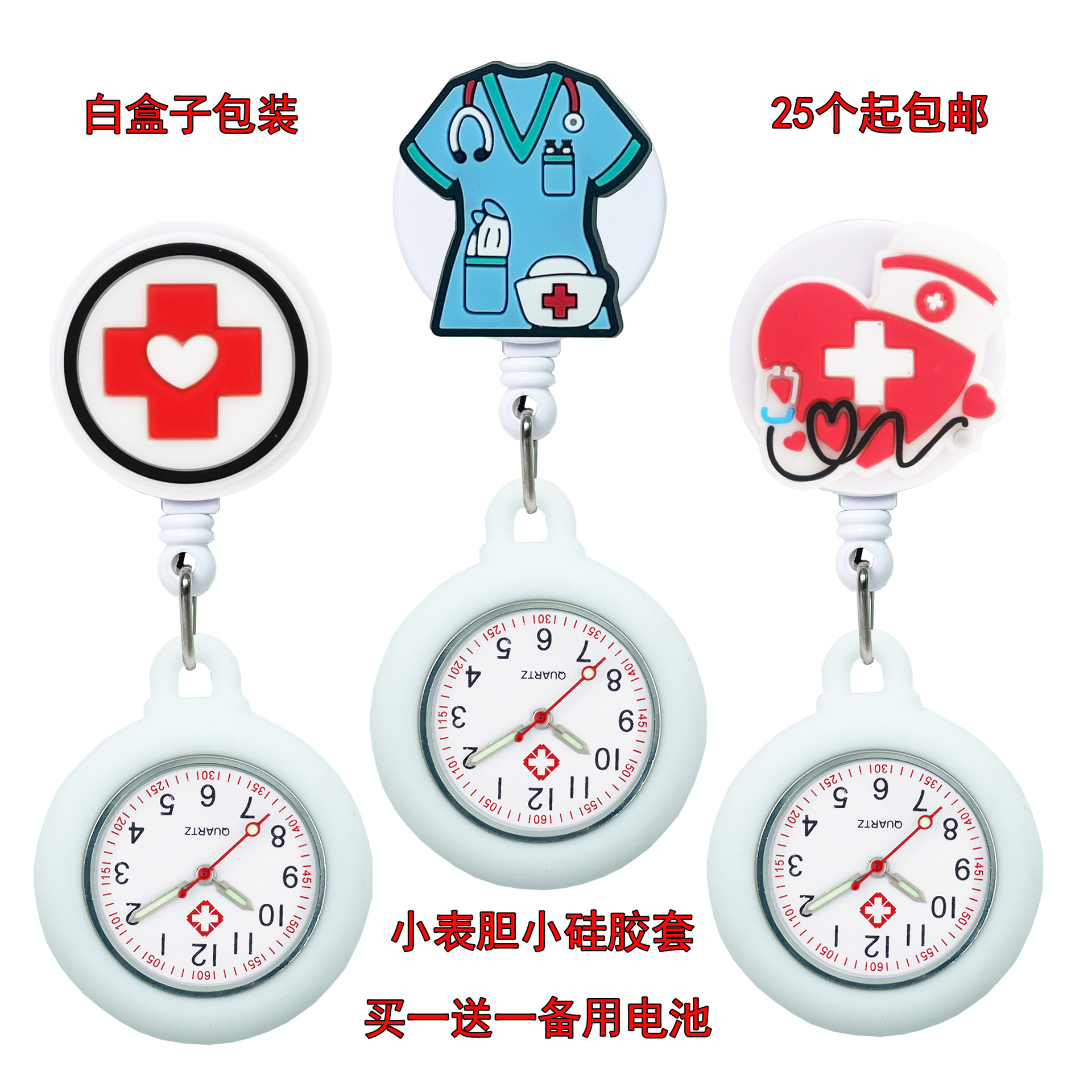 小さいシリカゲルのカバーの小さいサイズの柔らかいゴムは看護師の時計のキャラクターの動物の医者の看護師の胸の時計を引っ張ることができます。