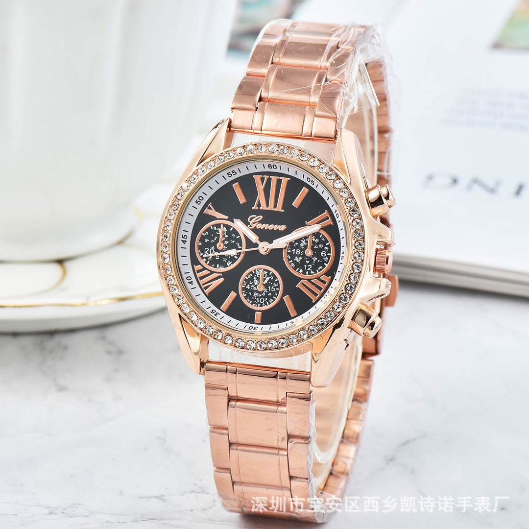 国境を越えたファッション腕時計の女性のシンプルな気質合金にドリル腕時計の学生腕時計の震え音が石英時計を生放送する