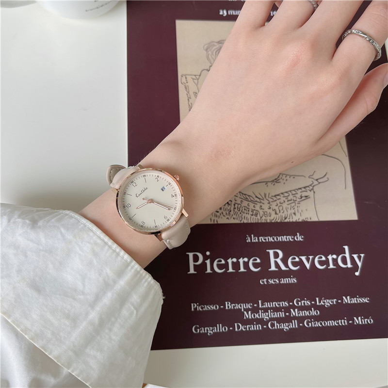 イン高見え時計レディースファッションシンプル気質フォレストカレッジスタイルレトロレディースカレンダーベルトスタイル腕時計
