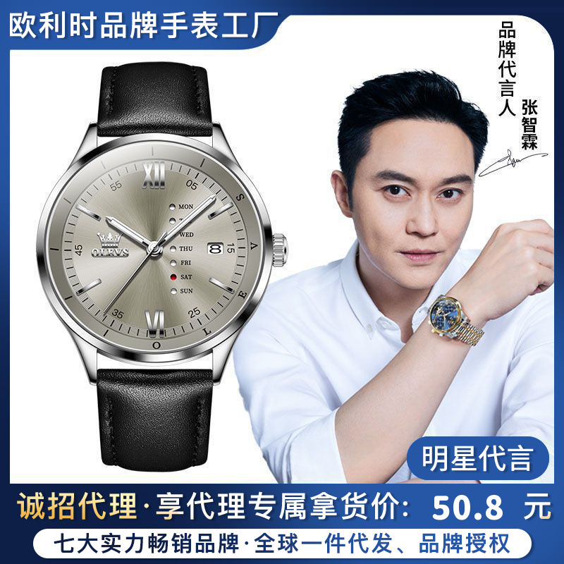 スターは欧利時ブランドメーカー卸売り多機能ビジネスクォーツ時計夜光トレンド男性腕時計男を代弁した